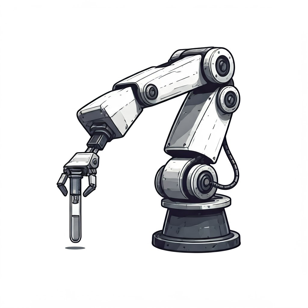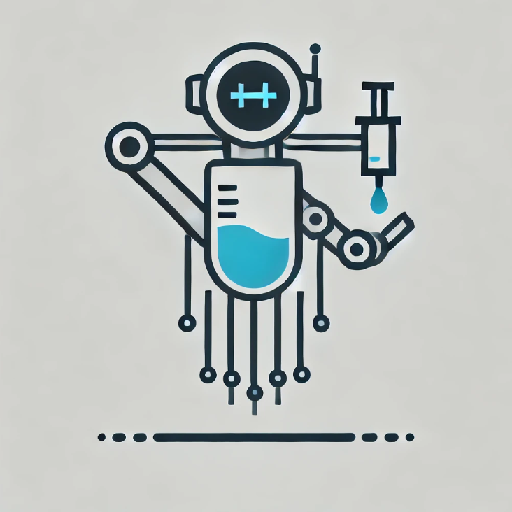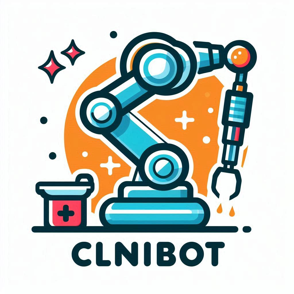 Para crear la imagen que nos identifica, los alumnos decidieron destacar el trabajo en equipo y la esencia tecnológica del proyecto. El logotipo muestra un brazo robótico sosteniendo un tubo de muestras, con tres pequeños puntos en el líquido que simbolizan la colaboración de los tres centros participantes. Este diseño combina elementos del ámbito sanitario y la automatización, reflejando perfectamente el espíritu de Clinicbot.