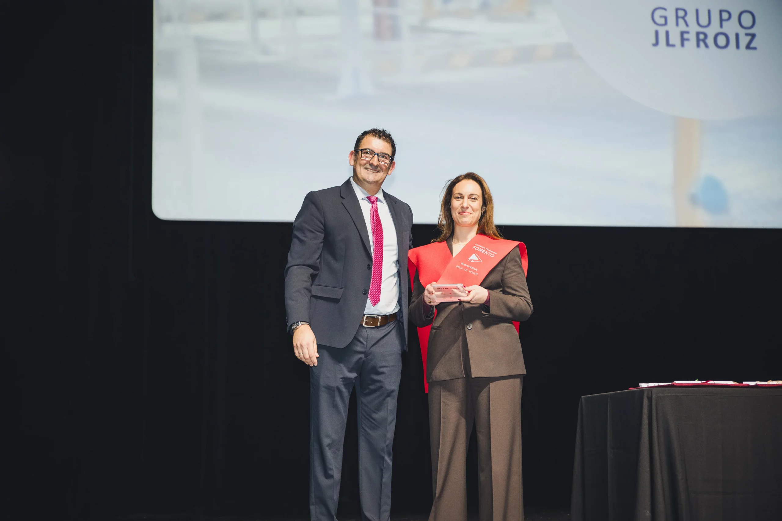 La inserción laboral es nuestra prioridad. Por ello, otorgamos la Beca de Honor al Grupo JL Froiz, referente en transformación digital y logística. Esta distinción, recogida por Ana María Alonso Carrera, reconoce su apuesta por el talento joven y la formación práctica a través de programas como la FP Dual Intensiva, donde Montecastelo es pionero.